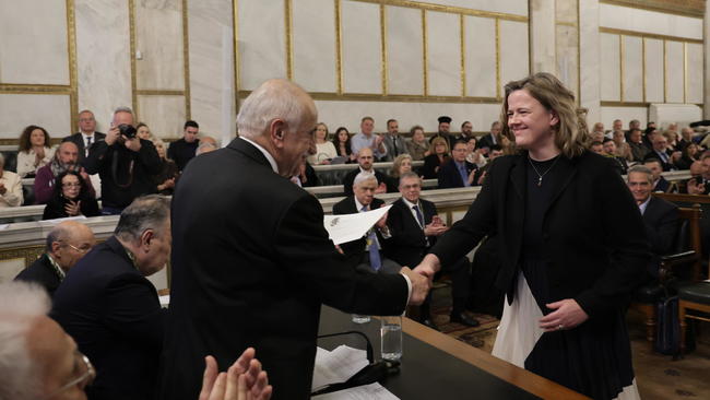 The , Greece's national academy of arts, science and letters, awarded Teresa Shawcross, Associate Professor of History and Hellenic Studies, its Lykourgeio Prize for her book Wisdom's House, Heaven's Gate: Athens and Jerusalem in the Middle Ages. The prize recognizes “an original, synthetic work” on “a subject relating to the history of the Greek nation from earliest antiquity to the contemporary era”. The plenary assembly of the Academicians commended Shawcross for "greatly advanc[ing] the study of the history and geography of our Mediterranean Sea, as well as the knowledge of the philosophy, theology, and manners of those dwelling around it.”